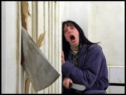 Me acabo de acordar de otra escena de cine que me marco y he recordado que la realidad siempre supera a la ficcion ,no ha tenido que venir el coronavirus para enseñárnoslo,…yo lo aprendi con unos 15 años cuando llame a mi hermano “gordabas” …fijate lo que es la vida…y el vino detras mia cual toro de san fermin con los ojos inyectados en sangre…me encerre en el cuarto de baño y me sente en el suelo con mi espalda apoyada en la puerta haciendo fuerza para su no apertura…y mi hermano de tal puñetazo que dio a la puerta rompio la parte de arriba y aparecio su cabeza exactamente igual que la de Jack Torrance en «El Resplandor» pero sin hacha.